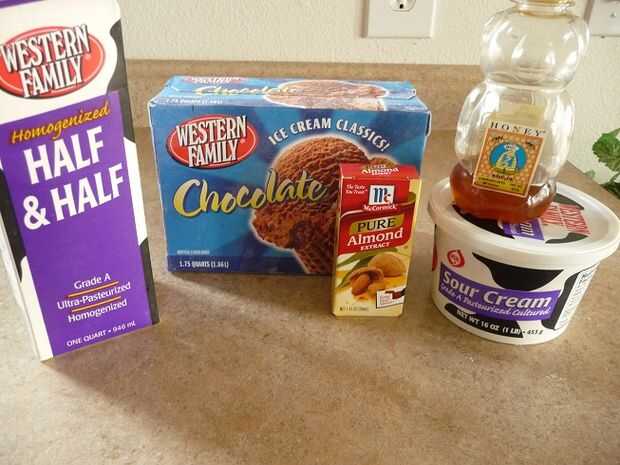 • 1/2 caja de helado de Chocolate-bien congelados. Sólo corte la caja entera por la mitad y retirar el helado en un plato y cortar en trozos más pequeños.