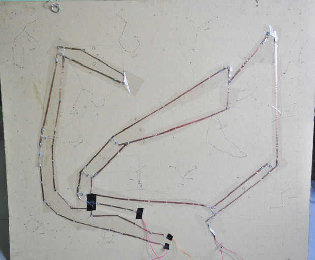 Diseño de la placa. Sorteo (espejado) las constelaciones de estrellas a bordo. Tales como Balanzas de Libra, Osa menor, Leo, cáncer, Cassiopeia, Lince y muchos más como usted pueden ver en mi tablero. (ver imagen 1)