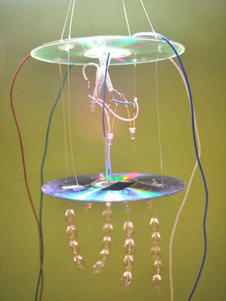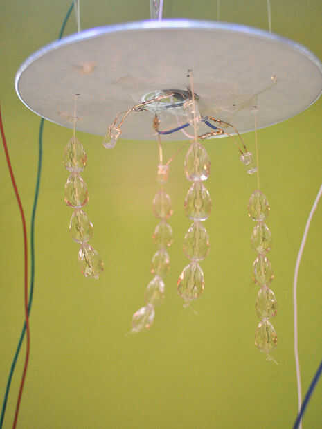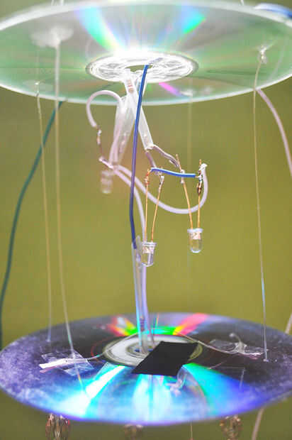 Coloque el blanco (4 LEDs blancos) a través del agujero del CD. Y poner encima el knick knacks. Organizar el LED por lo que brillará de derecha en el knick knacks. (ver imagen 1)
