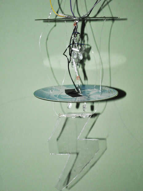 Conecte los LEDs de color naranja rojizo a través del agujero del CD. Y poner encima el acrílico (trueno). Organizar el LED por lo que brillará justo encima de él. (ver imagen 3)
