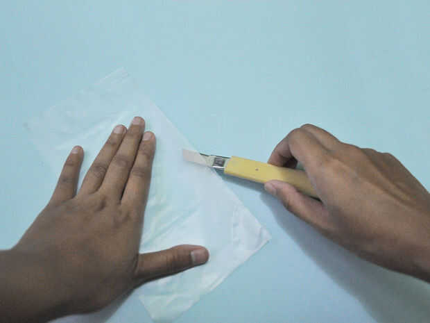 Pegar el algodón por todo el plástico. Sólo dejar por un momento y deje que se seque. (ver imagen 3)