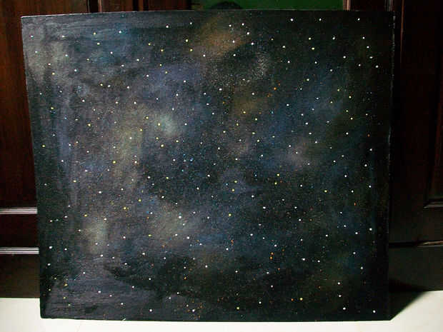 Podemos pegar papel impresión con imagen de las estrellas de espacio al instante, pero yo prefiero pintar con pintura acrílica de color. Porque el color no es fácilmente se desvanecen y durable que las imágenes impresas.