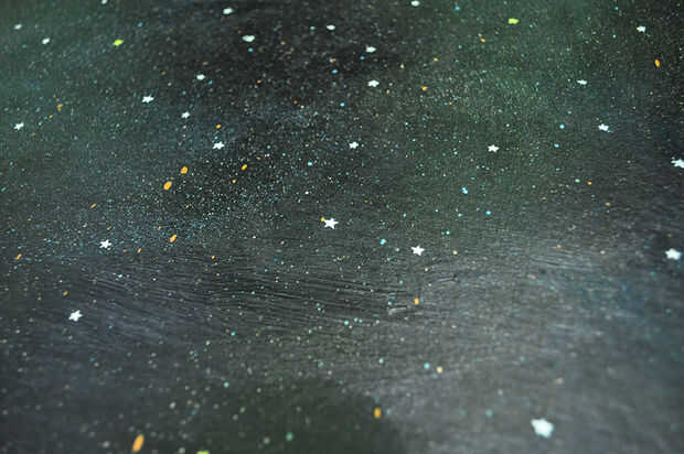 Rociar con alguna pintura en aerosol, hacen una pizca estrellas efecto con color azul, crema, naranja. (ver imagen 2)