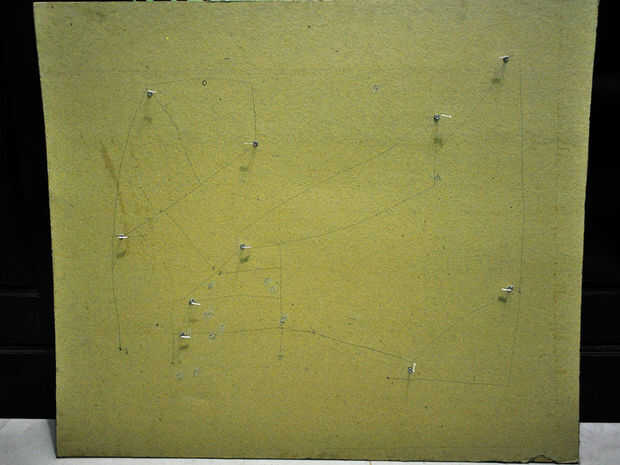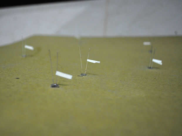 Poner todos los cables de led a través de los orificios en el tablero de papel para que todos los LEDs están asomando de un lado de la Junta y todos los cables están fuera de la otra. Para hacer más fácil al soldar, estoy usando alguna etiqueta que marcará la toma de tierra. (ver imagen 3)