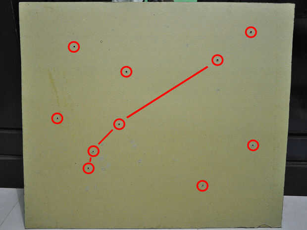 Dibujar el punto a bordo para luego colocar los LEDs. Entonces usted necesita perforar un orificio luego un poco más grande el tamaño del LED. (ver imagen 2)
