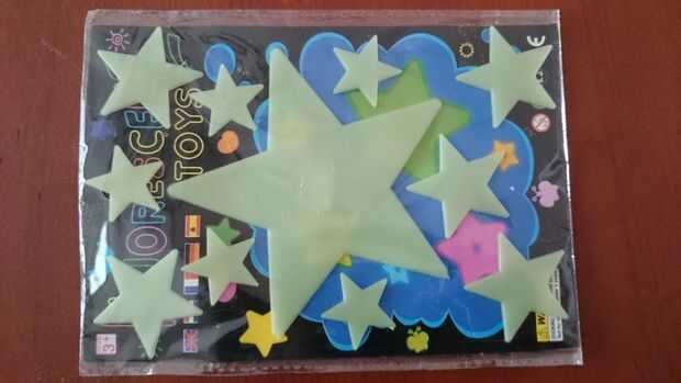Una vez seca la pintura y los detalles, lugar de figuras de plástico fluorescentes, que se pega con un poco de silicona.