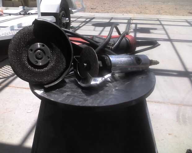 Un soldador â €"usar mi fiel, dusty Miller 135 con un 25% CO2 y mezcla de 75% Argón y alambre.030. Prefiero enormemente MIG (metal inerte Gas) sobre cable de alimentación (alambre tubular) como la salpicadura es casi inexistente y conseguir más acero para el dólar.