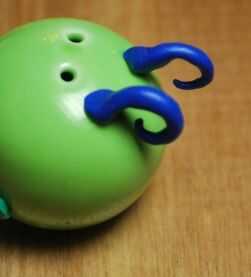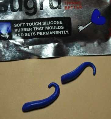 Ahora las antenas... Utilizando el azul Sugru, despliegue dos pedazos minúsculos, enrollamiento sobre tapas y fijar en la parte superior de un segmento.