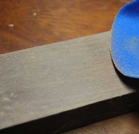 Pulir el bloque de madera hasta que todas las partes son lisas.  Ya que utilicé una madera exótica y solo planea aplicar un acabado mínimo, usando una lija cada vez más alta puede resultar en un aspecto casi acabado.  Para esta pieza (duramen púrpura) usé 120, 220 y 400 granos.