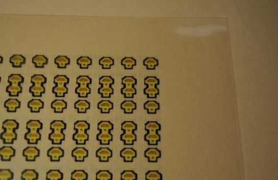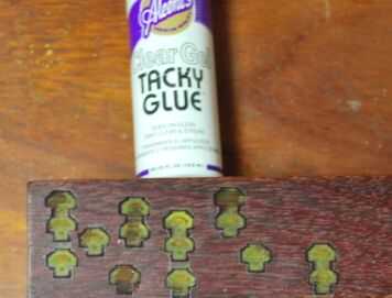 Imprimir setas sobre el papel de la transparencia y cortar.  Se adhieren a los lados del bloque de madera con pegamento transparente.