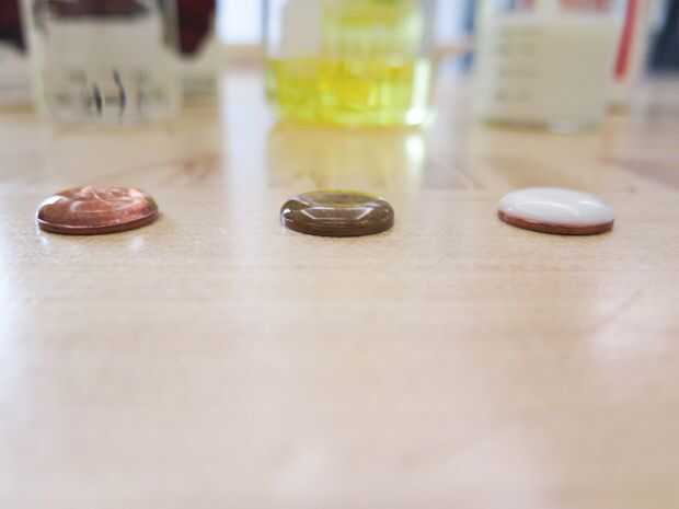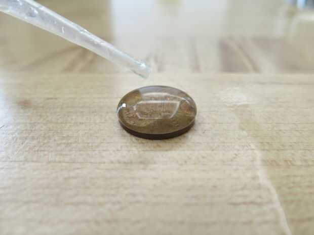 Probar el experimento con otros líquidos como leche, aceite, agua con sal y agua con jabón, y usted encontrará que obtener resultados distintos con cuántas gotas puede tomar un centavo. Resulta que el agua tiene una tensión superficial relativamente alta en comparación con otros líquidos, que significa que otros líquidos no hacen tan larga antes de que escurr el lado. Probarlo, cuenta tus gotas y limpiar esos micro-líos después!