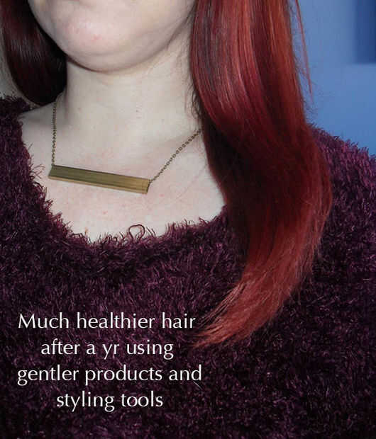 Daños por calor estilo--calor estilo es secado por naturaleza, pero usando herramientas más a su pelo se puede evitar que toneladas de daño. Si usted endereza su cabello diariamente como lo hago, ver abandono sus tenacillas para un cepillo caliente. Planchas (incluso aquellos que pretenden infundir humedad o deslizarse suavemente) son esencialmente rastrillar por el eje del pelo. Usted está en alto riesgo de dañar la estructura del cabello y gradualmente pelar hacia fuera de color. Un año de plancha plana me dejó con los extremos raggedy, seco. Cambiar a un cepillo (John Freida hace un modelo de farmacia muy asequible) no sólo demostró para ser más eficaz para el alisado, mi pelo es mucho más sano y color se mantiene más tiempo.