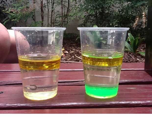 Método: En primer lugar tienes su sede 2-aunque tazas, poner el agua en ambos hasta su primer caballete y vierta el aceite en ambos hasta la cresta de segundo después de que se el detergente y vierta en solo uno de ellos a la tercera cresta luego revolver la horquilla alrededor de las copas al menos 10 veces y se convertirá en burbujas más revolver