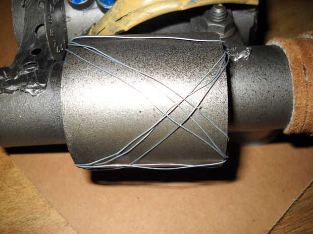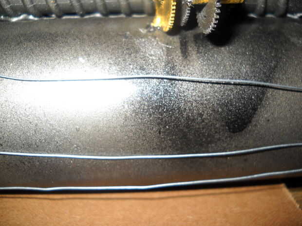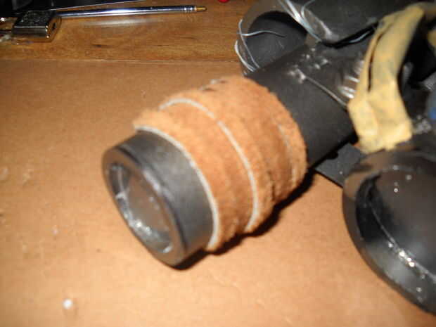 Para obtener información adicional, que no quería pintar, tomé un alambre de metal y envuelto alrededor de diferentes partes de los prismáticos y también tomó la tira de cuero y envuelta alrededor de la pieza más larga de PVC para añadir un efecto de agarre.