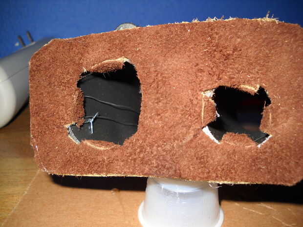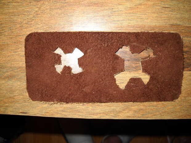 -Obtener la pieza de 2 3/8 de 4 5/8 cuero pulg. y trazar el contorno de los tubos de PVC en él.