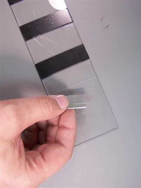 Cuando has alcanzado la longitud deseada sólo anotar el plexi con un cuchillo o navaja de afeitar. El plexiglás se romperán fácilmente en este punto. Sólo utilice el borde de una mesa y quite el exceso.