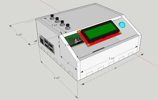 SketchUp fue utilizado al plan/diseño de la caja. Los planos se adjuntan a la página (y en git en SketchUp dibujo), y una captura de pantalla está en las imágenes.