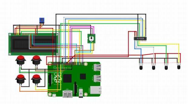El esquema de cableado en Fritzing y se une a la página (así como en el Esquema de cableado ) una captura de pantalla está disponible también en las imágenes.