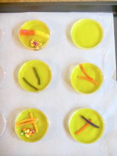 Antes la gelatina, añadir tus decoraciones gomosos. Esto permitirá que las gomitas en la gelatina. Jugar con capas y colores. ¡Que te diviertas!