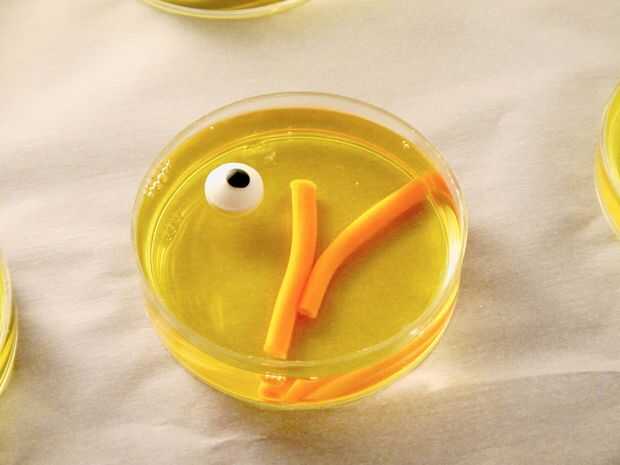 Una vez que tu gelatina de Petri ha configurado usted puede añadir sus toques finales decorativos. Coloque sus ojos caramelo y espolvorear sus sprinkles varios.