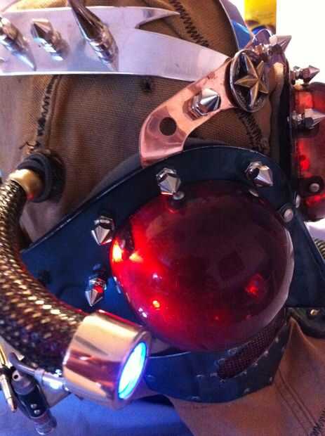 Lámpara de científico loco hace de la hoja de aluminio.065. parte inferior celebrada con tornillos. Usé un scotch - brillante pad '2 pulgadas' en una prensa del taladro para dar el patrón de círculo. Sólo lo hice al azarLas lámparas son salida lámp