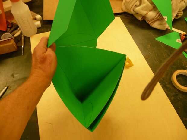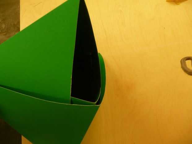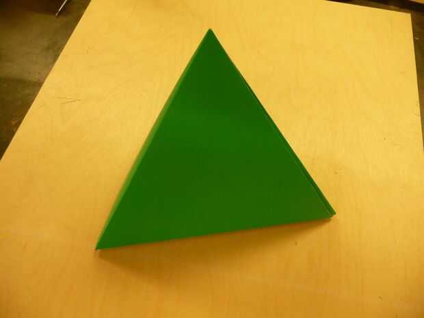 Desde el doble punto de la 1:00 hasta que tienes un tetraedro con dos triángulos de papel al revés en cada lado. Luego meta las pestañas entre estos triángulos para cerrar para arriba. Se realizan.