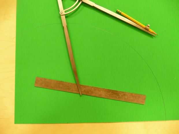 Coloque la brújula para un radio de 10-3/4". Coloque la brújula en el punto de partida y dibujar un arco en la parte inferior izquierdo de la cartulina.