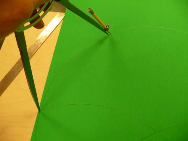 Lugar la brújula a lo más a la izquierda arco/círculo se entrecruzan y marcar otra intersección con el círculo arriba y a la derecha. Lo mismo en el otro lado.