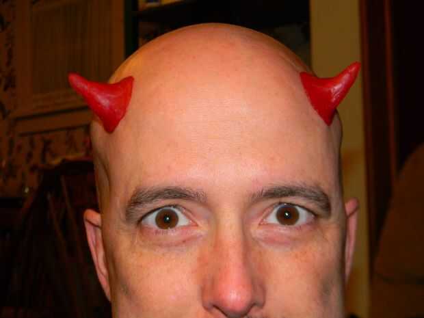 Hablando de eso, recomendaría contra poniendo maquillaje en debajo de ellos, como probablemente tendrán problemas para pegarse. El maquillaje en la última foto se aplicó después de que los cuernos estaban en lugar, y aún entonces, van mamados suficiente maquillaje debajo de ellos a través de algún tipo de acción capilar para derrotar parcialmente a la viscosidad. (El maquillaje les dan algún buen color, sin embargo.)