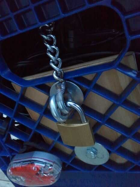 Colocar un cajón de plástico para el bastidor trasero de una bicicleta proporciona un lugar conveniente para artículos de tamaño pequeño a mediano en su bicicleta. Pero a veces puede ser ejecutando múltiples tareas y no puedes descomprimir todo, desde el cajón y llevarlo todo con usted cada vez que aparcar la bicicleta. Este instructable agrega una bloqueo de la tapa superior para un cajón de la bicicleta que proporcione cierto grado de seguridad para los elementos de la caja mientras está aparcada su bicicleta (por lo menos mantendrá las personas honradas hacia fuera).