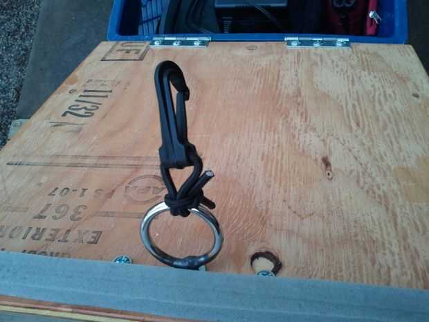 El mango es una repuesto manija del gabinete que tenía por ahí. Es opcional, pero bueno tener. Montaje con los tornillos que vienen con él. El anillo de bloqueo es necesario para el mecanismo de bloqueo (se muestra en un paso posterior). El anillo de cierre es un anillo de acero tenía por ahí que soldada a un perno de 1/4", pero aquí puede ser otras soluciones más fáciles que no requieren de soldadura. El anillo sólo hay que ser lo suficientemente grande como para la cadena de bloqueo a pasar (se muestra en un paso posterior). El clip de plástico y elásticos son de una correa de bolso de cámara que compré ($. 50) en una tienda local. El clip se utiliza como una forma rápida para asegurar la parte superior cuando no es necesario la parte superior bloqueada.
