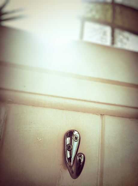 Encontrar un poco de pared y soporte de las muletas contra él. Quieres un lugar un poco fuera del camino para que las personas son menos propensas a cepillo ellos y hazles sobre. He elegido un rincón por la puerta en la parte inferior de las escaleras.