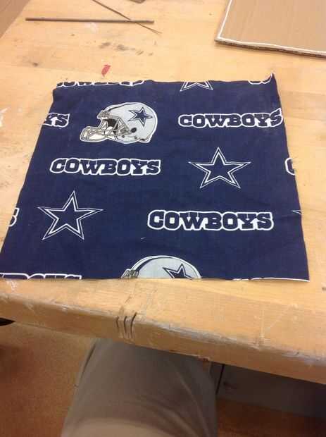 Cortar una pieza de 10 x 10 tejido de su opción para agregar un poco de diseño en la cartulina dentro de la caja.