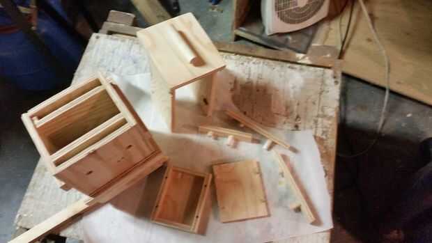 También corté 2-4 1/4" x 6"piezas para las pistas de interiores, 4-1" x 4", 4-1 "x 5 1/2" para el flejado, 3 - 1 1/4" 3/8" tacos para los pasadores y 13-3/4" 3/8" espiga para el flejado.