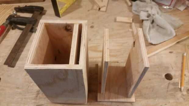 Puesto que la espiga más pequeña que tengo es de 1/4", tuve que lijar hasta aproximadamente 1/8" para hacer los pernos de la tapa de la caja interna