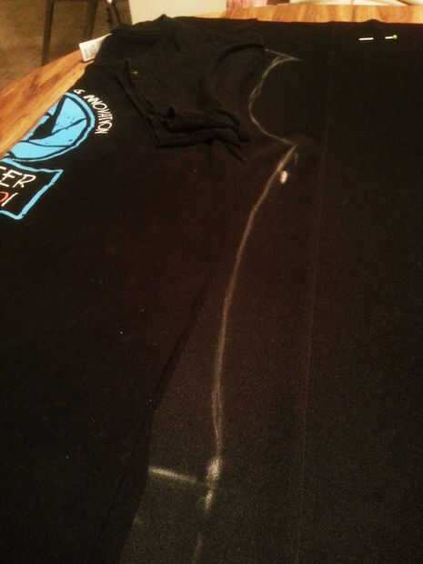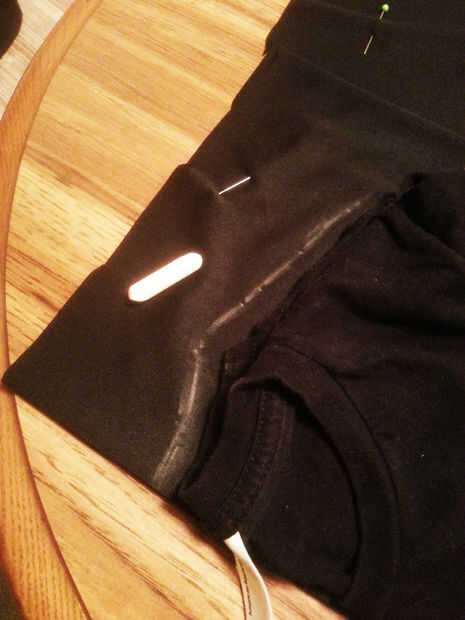 6. Coloque la camisa de ajuste apretado, doblada por la mitad por la mitad, contra el borde izquierdo de la tela. El centro de la camiseta (aunque doblado en mitad) debe alineado con el borde cerrado solo de su tejido.