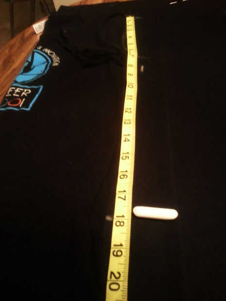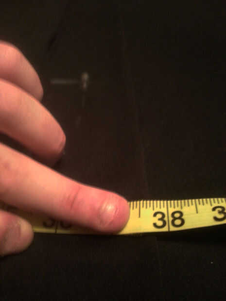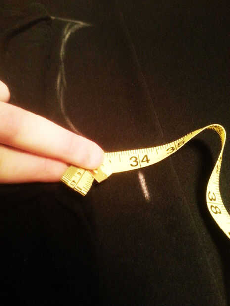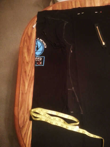 13. medir desde el hombro hasta la parte inferior del vestido en la parte derecha de la camisa y coloque una marca de tiza vertical.