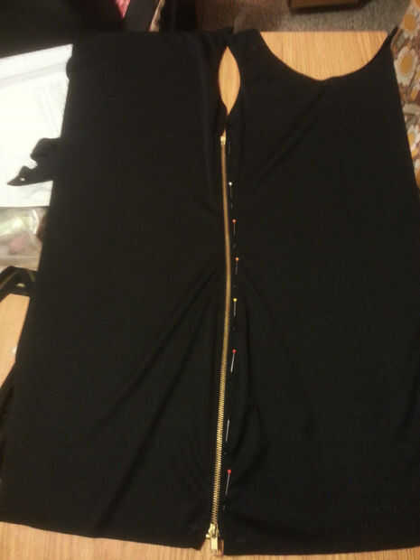 Tip: después de prender las cremalleras en la parte delantera de la subsistencia del vestido las cremalleras zip antes de fijar la cremallera en la parte trasera del vestido. Esto es para asegurar una vez que se cosen las piezas delanteras y traseros que alineen correctamente al comprimir copia de seguridad. Cuadro 9