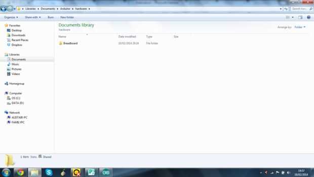 Extraiga el archivo descargado Breadboard.zip en la carpeta hardware nuevo que creó.