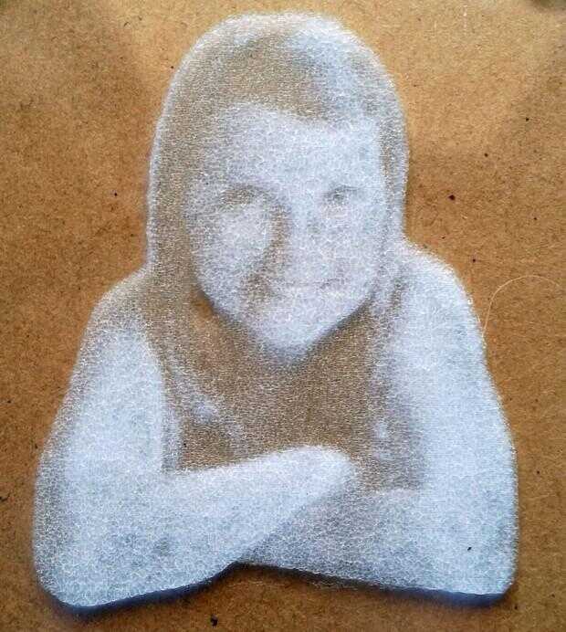 Cristal era algo raro para grabar como la potencia del láser enorme significada en el modo de onda contious que los pedazos de cristal quebrado fueron fundidos junto con la siguiente línea de láser, creando una apariencia como vidrio de seguridad roto con la imagen en él.