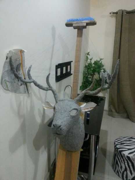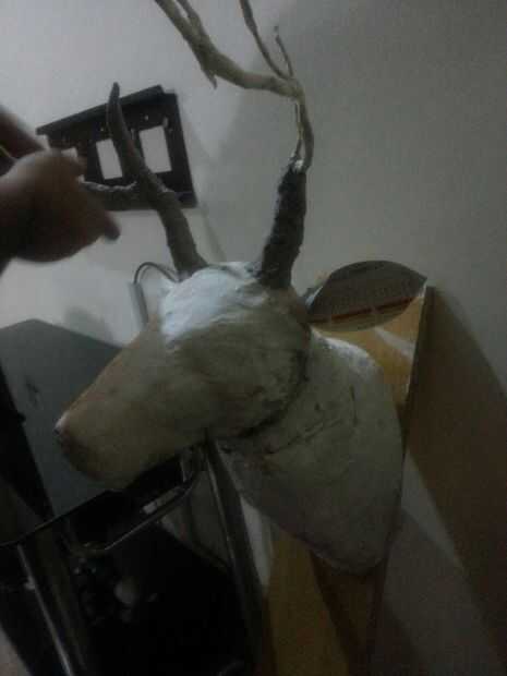 Esto será su arcilla, papel maché, aplicar sobre la cabeza de ciervo a peso ligero pero fuerte base para la cabeza de los ciervos. déjelo secar durante una semana en el sol.