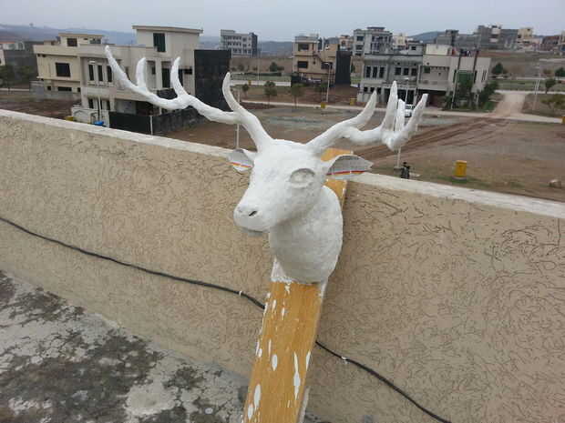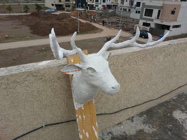 Luego mezcle polvo de tiza con agua para hacer barro y se usa para dar forma final de los ojos y cuernos.
