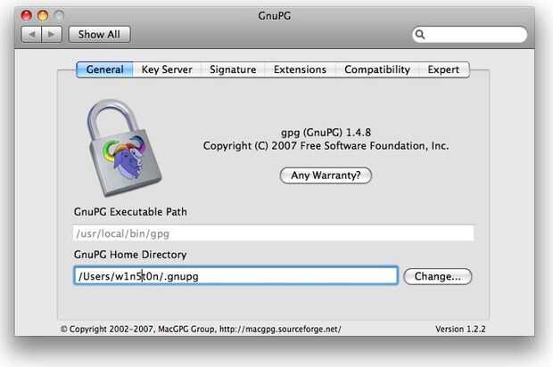 A continuación instalé preferencias de GPG. Poner un icono GPG en mi panel de preferencias del sistema; No cambiar nada.