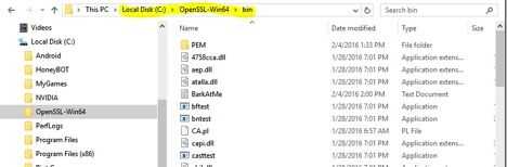 • Una vez allí, abra la carpeta OpenSSL a continuación, abra la carpeta denominada "bin"