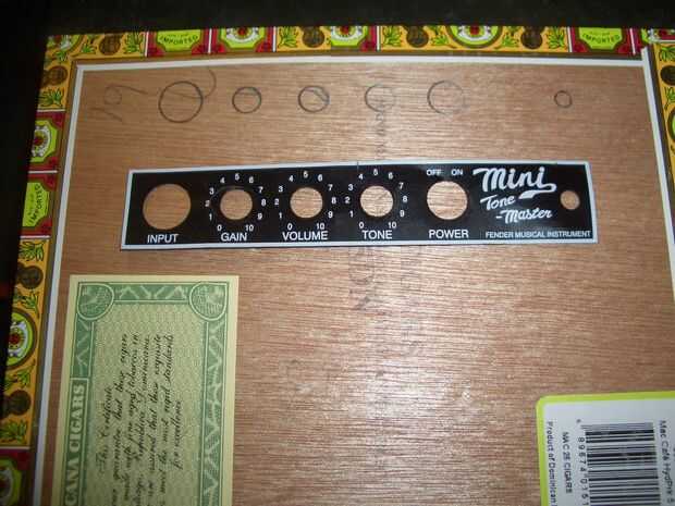 Incluso si elige no utilizar la etiqueta original del control en su construcción, sugiero eliminarlo de todas maneras como lo hace una plantilla perfecta a utilizar para la perforación de los agujeros para los controles de la caja.