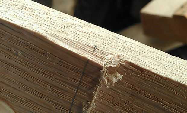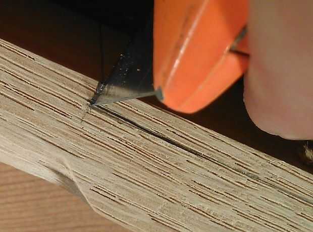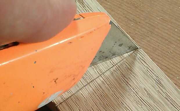Una vez hecho esto también ambos lados del cuello, desea Marque el lado con un cuchillo Xacto, cuchillo, cuchillo de bolsillo lo que trabajarán para esto. Lo que esto hará es evitar que la viruta hacia fuera. Voy a utilizar una mesa de router ya que no tengo una mesa vio en mi tienda.