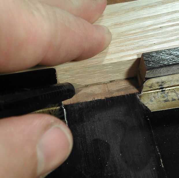 Dependiendo del grosor de la tapa de la caja, usted necesitará marcar esta profundidad hasta retirar la cantidad necesaria. Después de hacer el lápiz marca la longitud de la tapa. Marque hacia abajo los lados del cuello 1/8"- 1/4" según sea necesario. Luego usé el cuello cortado como una manera de marcar perfectamente la profundidad sin tratar de equilibrar un borde recto para hacer esto. Uso de las marcas de lado como su arranque y parada.