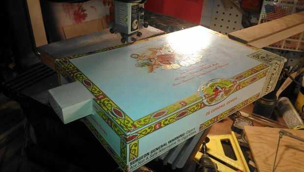 This is the second guitar I have made. Comenzó con un cuadro muy bonito de Rocky Patel puros. Es un cuadro de edición de aniversario con una placa metálica en la parte frontal que realmente viste el aspecto general. También pedí alambre de traste que