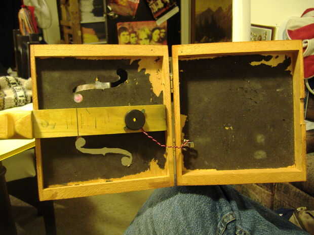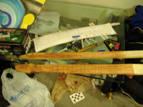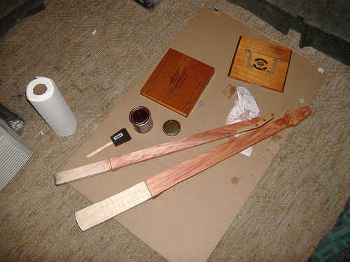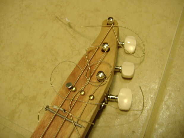Decidí hacer una guitarra un poco más elegante que la mayoría, con guitarra real ajuste de clavijas, un buen teñido y barnizado final y un pastilla piezoeléctrica. Se pueden ver algunas fotos de mi banjo casero, desde que ambos al mismo tiempo.