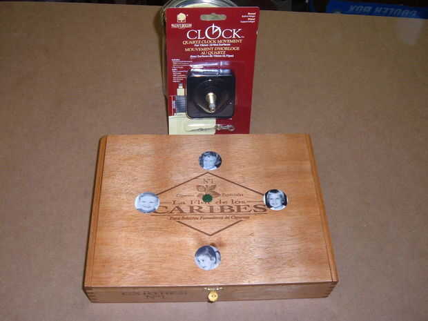 En el orificio previamente taladrado en el centro de la superior de la caja de cigarro, instale el mecanismo de reloj de acuerdo a las instrucciones del paquete.